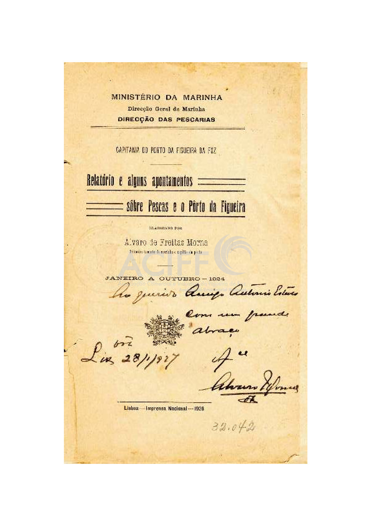Relatório sobre a pesca no porto e barra da Figueira da Foz, elaborado pelo Tenente de Marinha Álvaro Freitas Morna, Capitão deste porto.