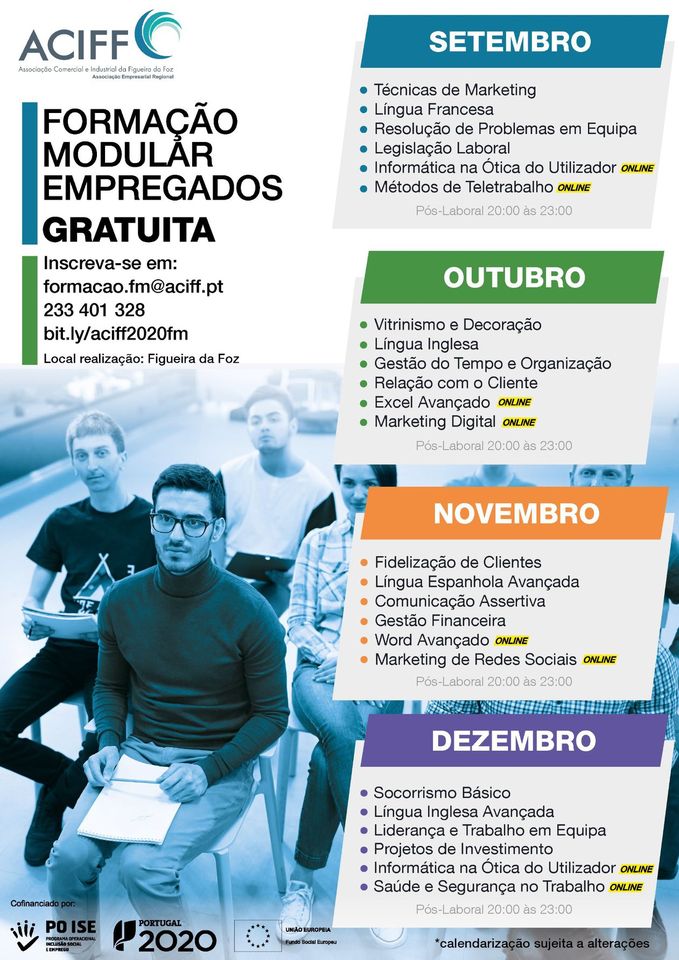 Inscrições e mais informações através do email formacao.fm@aciff.pt, do telefone n.º 233.401.328 e nas instalações da ACIFF.