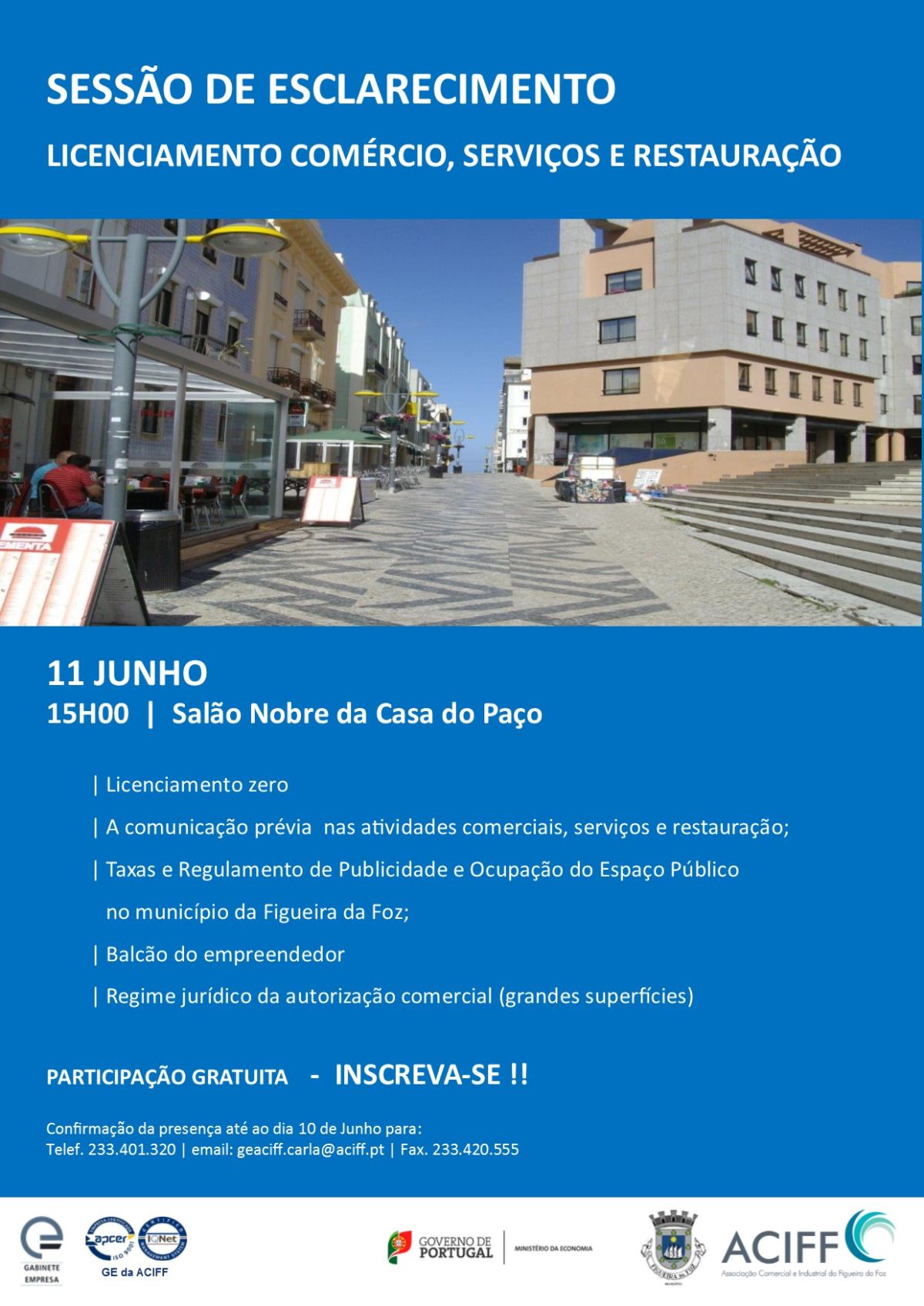 Com o objetivo de esclarecer os empresários sobre os aspetos legais inerentes ao licenciamento da sua atividade, a ACIFF vai realizar, em parceria com o Município da Figueira da Foz e a Direção Regional de Economia do Centro, uma sessão de esclarecimentos, no próximo dia 11 de junho, pelas 15h, no Salão Nobre, da Ala Central da Casa do Paço.
