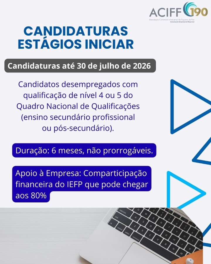 Informamos que estão abertas as candidaturas para as Medidas Estágios IEFP , Estágios INICIAR e Estágios + Talento. Período para submissão de candidaturas até 30 de julho de 2026.